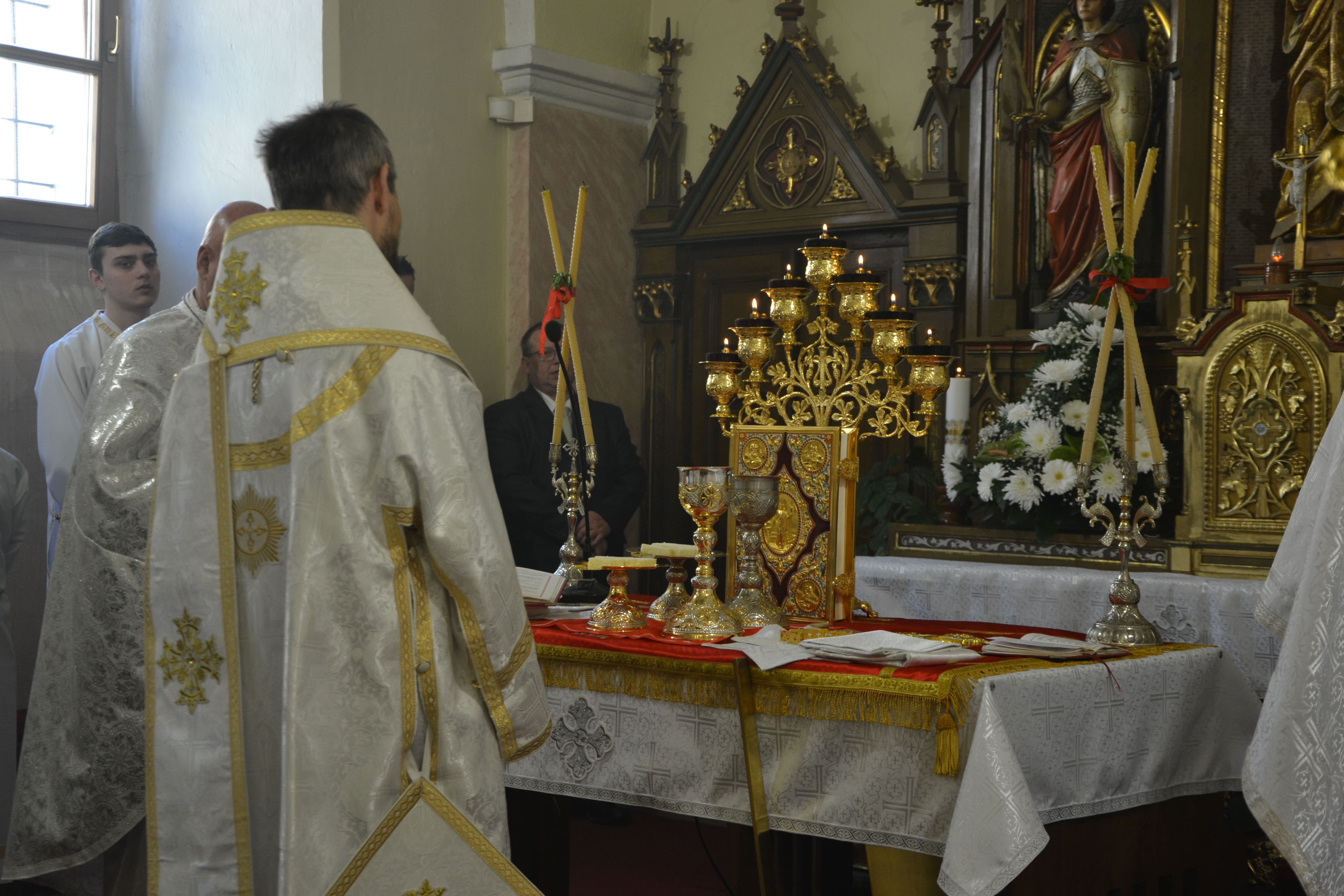 Na sviatok apoštolov pred svätou liturgiou posvätil otec Ján Kovaľ nové liturgické rúcha – červené a zlaté.