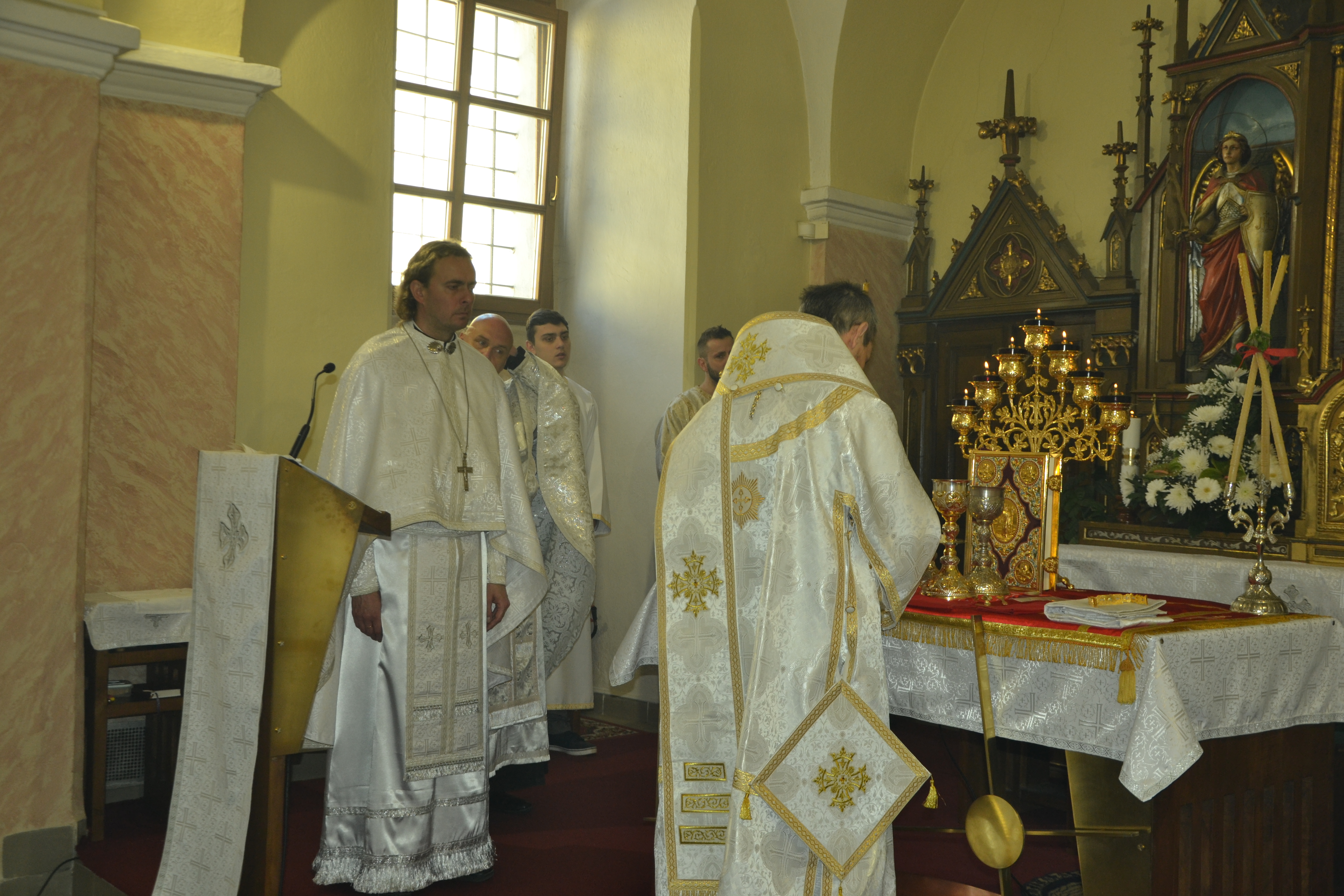 Na sviatok apoštolov pred svätou liturgiou posvätil otec Ján Kovaľ nové liturgické rúcha – červené a zlaté.
