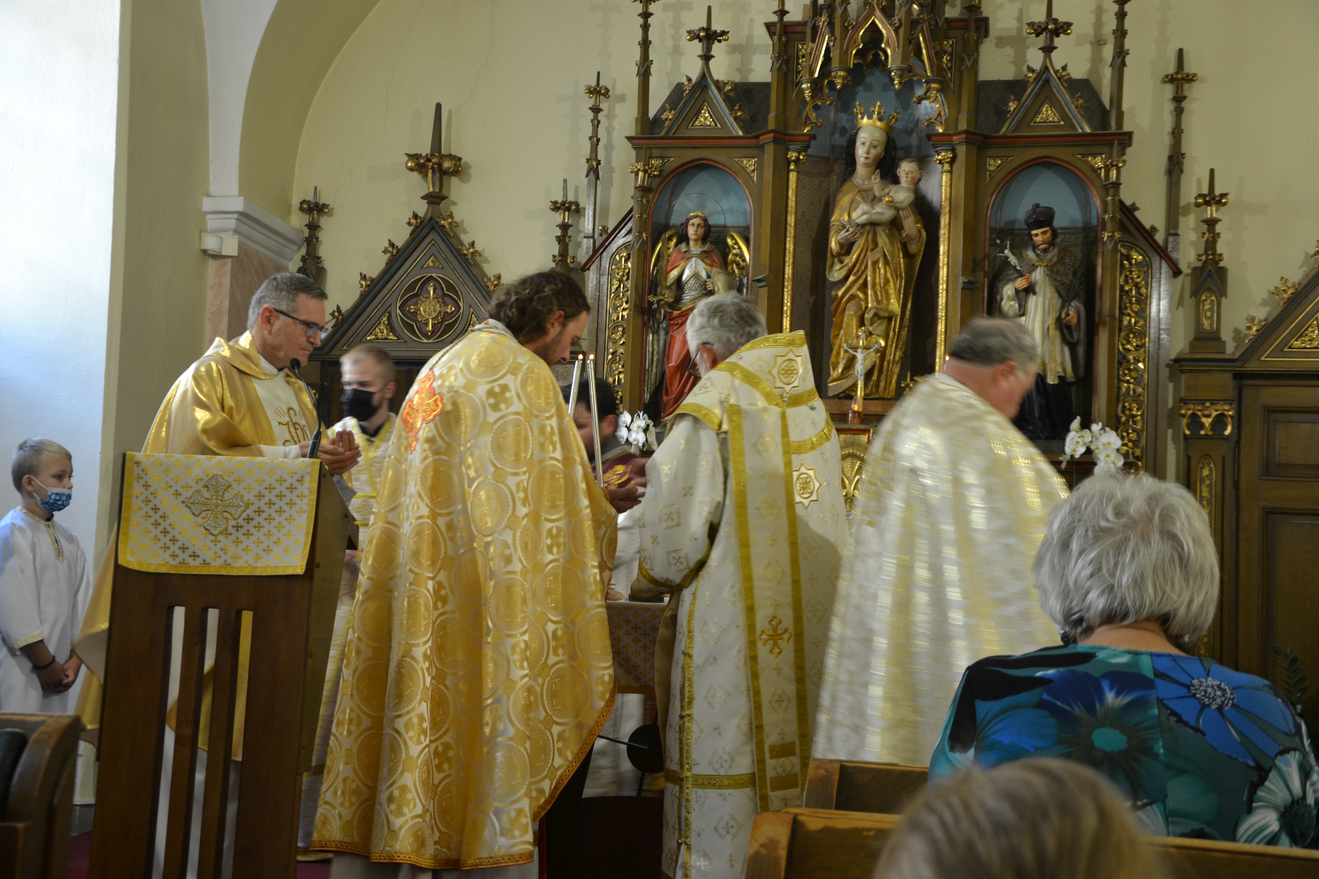Na záver Eucharistie nasledovalo myrovanie a poďakovanie p. Márie Dologovej vladykovi Petrovi za jeho účasť na slávení Eucharistie a ohlásenie Božieho slova. Odpustová slávnosť pokračovala spoločným obedom veriacich. Tak ako každá odpustová slávnosť aj táto bola pre miestnu farnosť časom požehnania a utvrdením sa vo viere a jednote spoločenstva.
