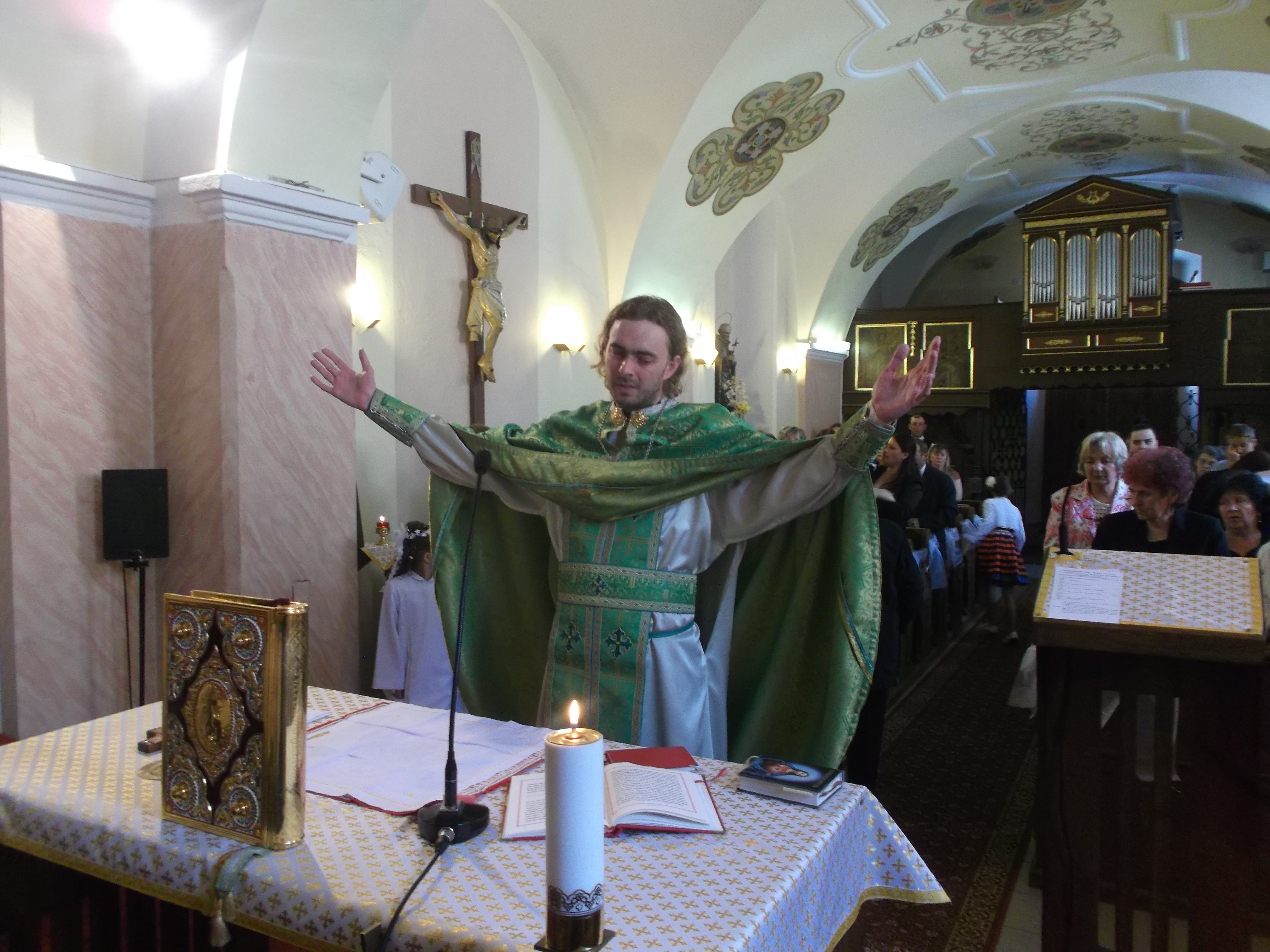 Táto naša odpustová slávnosť je umocnená slávnosťou detí našej farnosti – prvej sv. spovede a prijatím tajomstva Najsv. Eucharistie. Skoro všetci, ste boli pokrstení v tejto farskej rodine. Dnes k sviatostiam iniciacie – čiže krstu, myropomazania a Eucharistie sa pridáva ďalšia sviatosť – pokánia. Sviatosť ktorá sprostredkúva jednotu človeka s Bohom, ktorá sa narúša našou slabosťou a hriechom. Je to viac ako symbolické, že túto sviatosť prijímate v deň, kedy cirkev slávi svojho patróna bl Vasiľa – ako mučeníka jednoty.