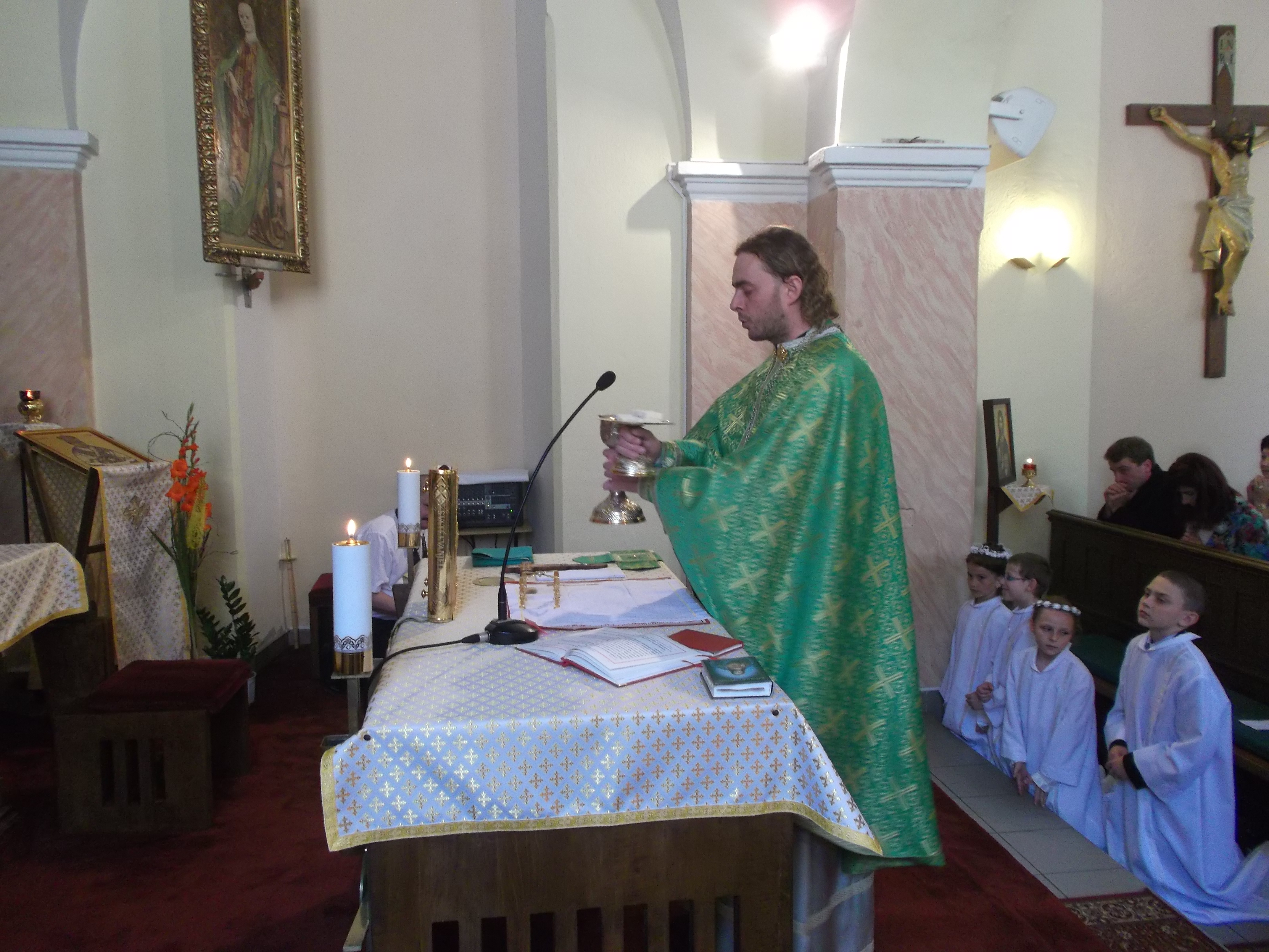 Táto naša odpustová slávnosť je umocnená slávnosťou detí našej farnosti – prvej sv. spovede a prijatím tajomstva Najsv. Eucharistie. Skoro všetci, ste boli pokrstení v tejto farskej rodine. Dnes k sviatostiam iniciacie – čiže krstu, myropomazania a Eucharistie sa pridáva ďalšia sviatosť – pokánia. Sviatosť ktorá sprostredkúva jednotu človeka s Bohom, ktorá sa narúša našou slabosťou a hriechom. Je to viac ako symbolické, že túto sviatosť prijímate v deň, kedy cirkev slávi svojho patróna bl Vasiľa – ako mučeníka jednoty.
