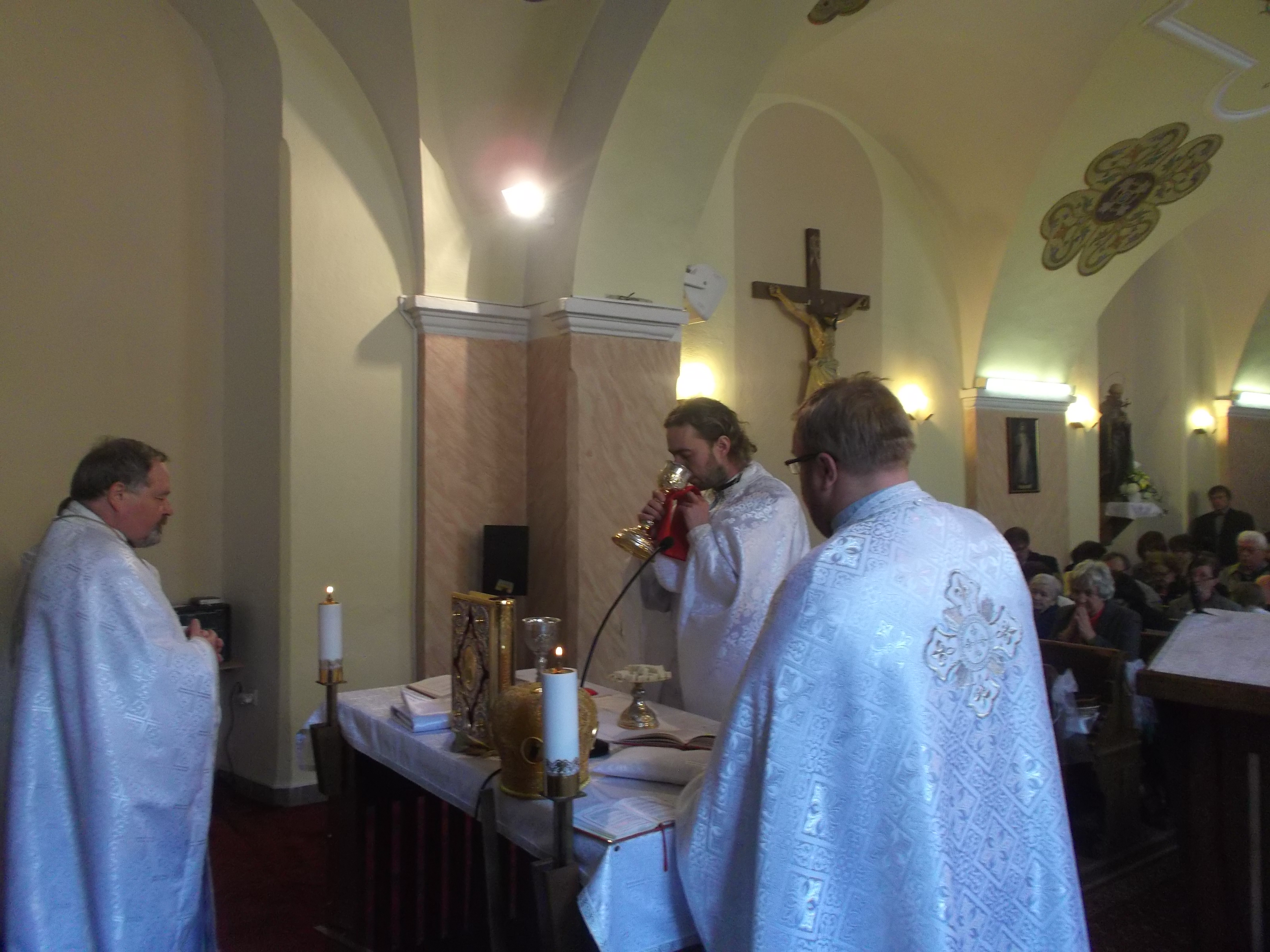 Po svätej liturgii nasledovalo agapé v priestoroch katolíckej fary, kde sa veriaci osobne pozdravili s vladykom Petrom a zotrvali v družnom rozhovore.