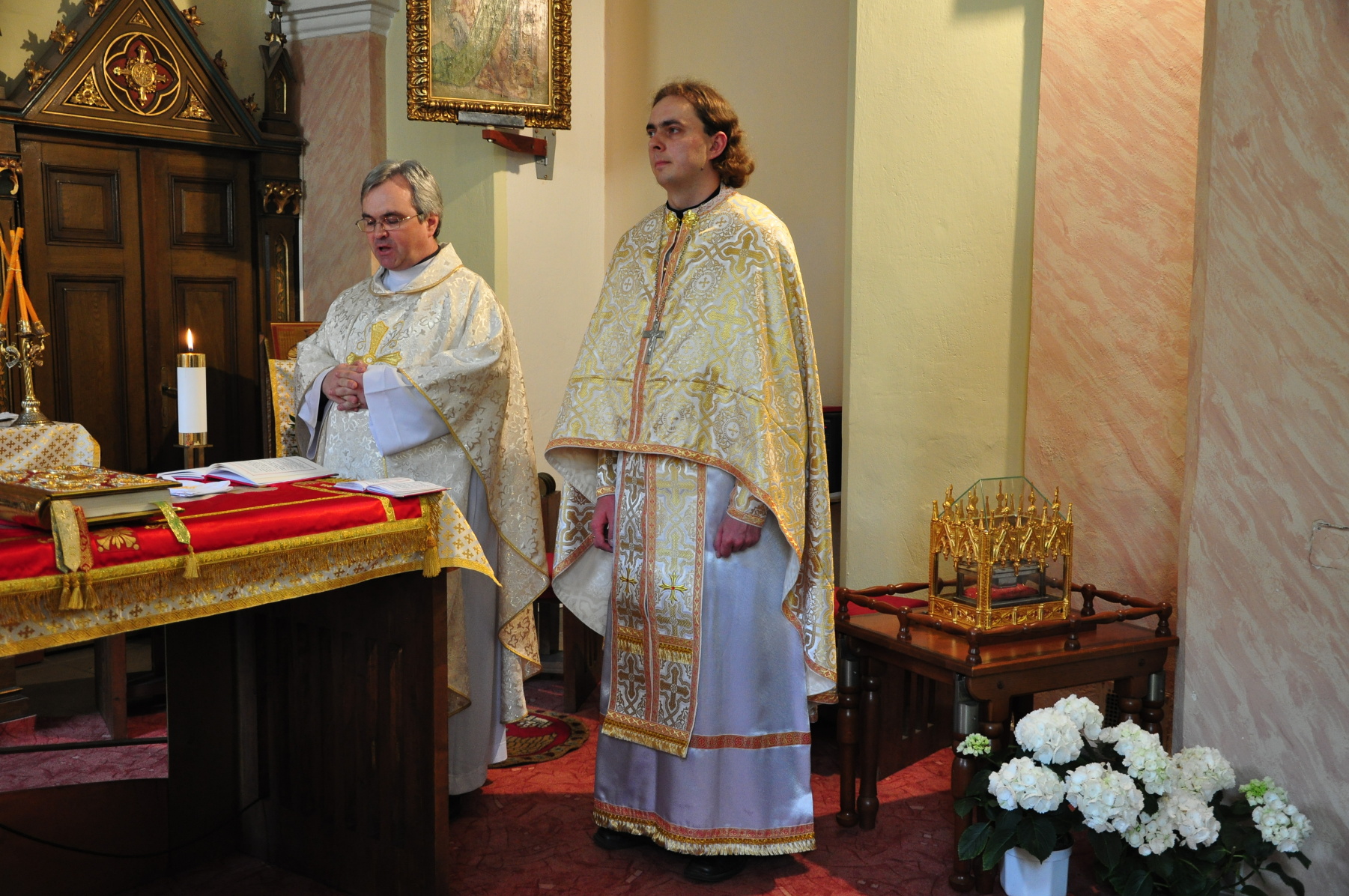 Na sviatok apoštolov pred svätou liturgiou posvätil otec Ján Kovaľ nové liturgické rúcha – červené a zlaté.