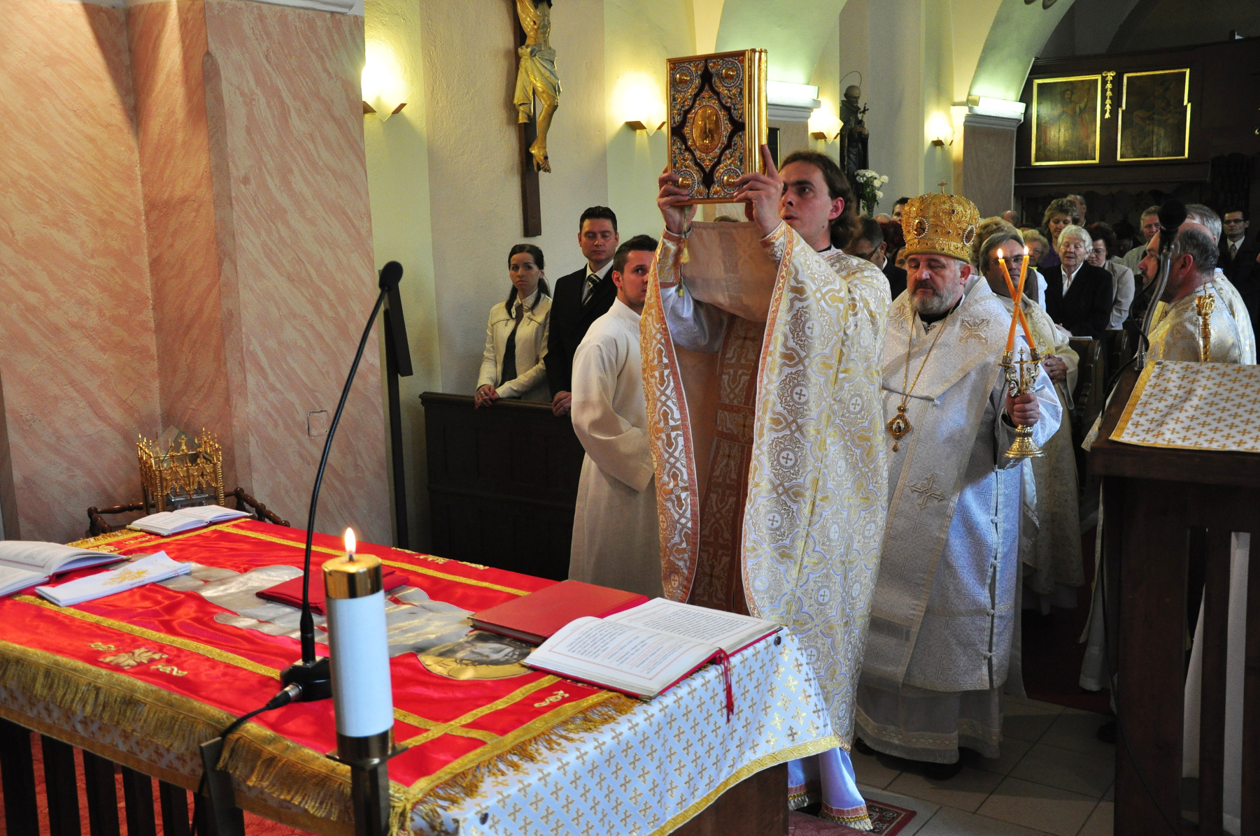 Do slávenia vstúpili v sobotu, modlitbou veľkej večierne  s požehnaním lítijných darov. Archijerejskej svätej liturgii predchádzal moleben k blahoslavenému Vasiľovi Hopkovi. Božskej liturgii predsedal vladyka Milan Lach SJ pomocný biskup Bratislavskej eparchii. Spolu s ním slávili: o. František Takáč, farár zo Šumiaca a domáci kňaz o. Ján Kovaľ.