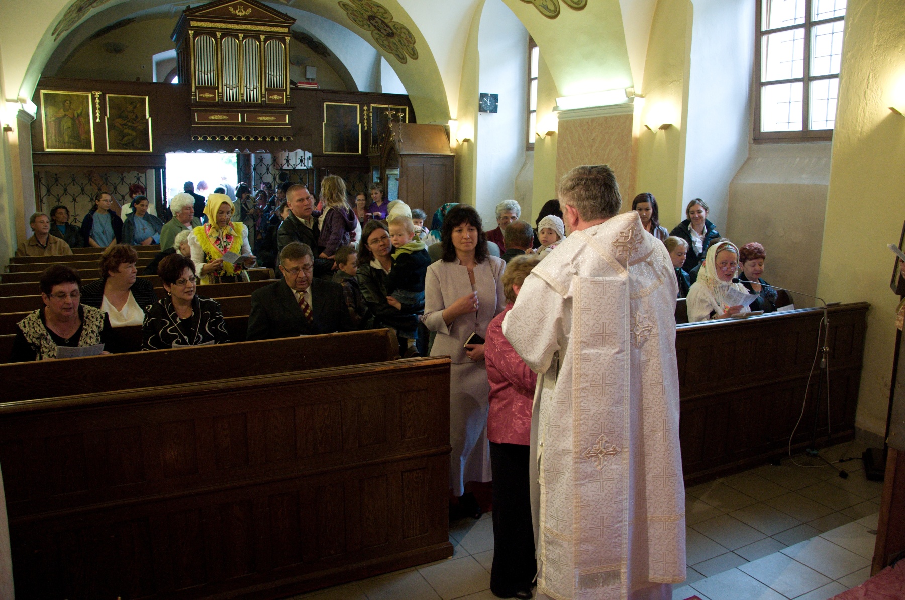 Na záver Eucharistie nasledovalo myrovanie a poďakovanie p. Márie Dologovej vladykovi Petrovi za jeho účasť na slávení Eucharistie a ohlásenie Božieho slova. Odpustová slávnosť pokračovala spoločným obedom veriacich. Tak ako každá odpustová slávnosť aj táto bola pre miestnu farnosť časom požehnania a utvrdením sa vo viere a jednote spoločenstva.