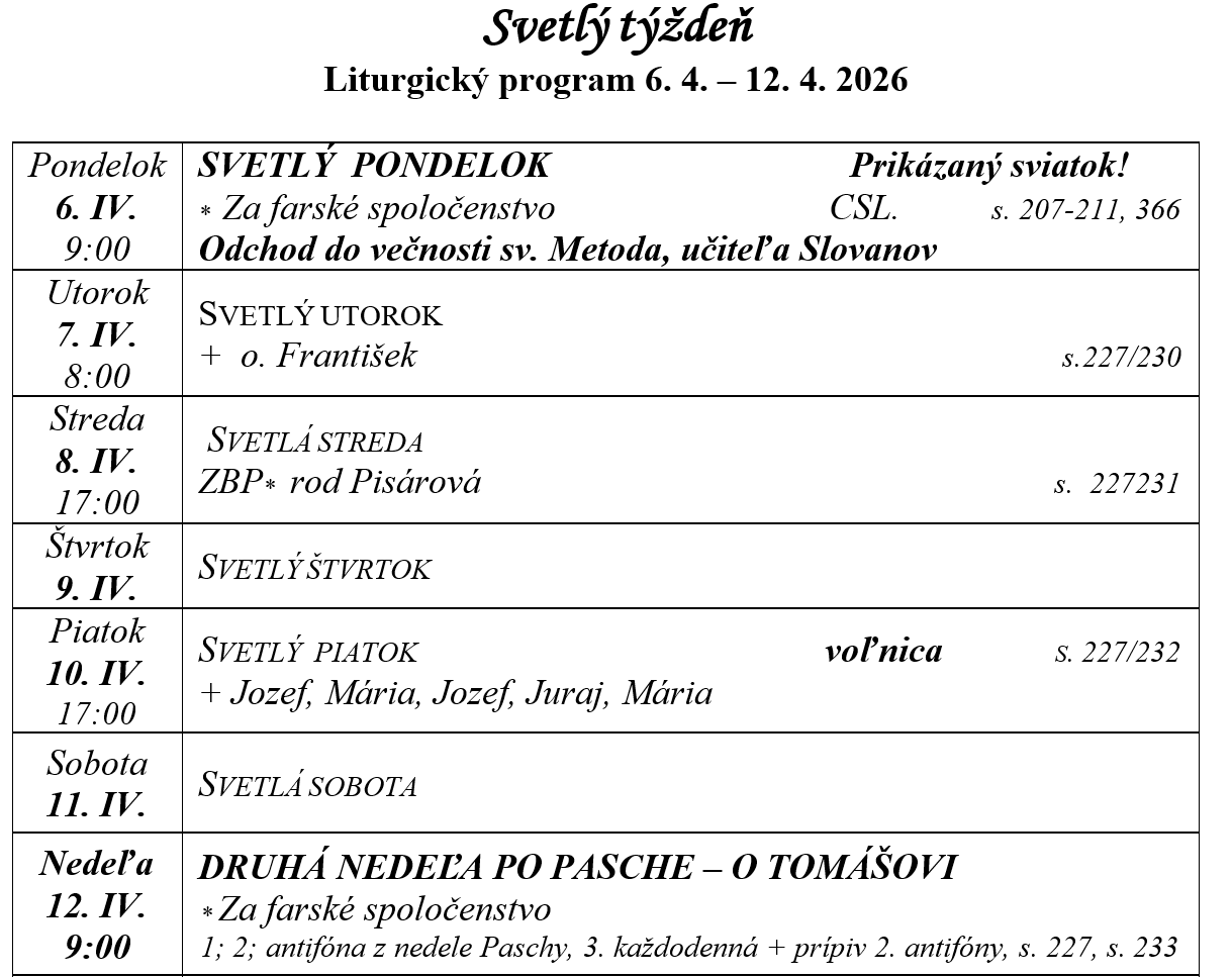 Liturgický program 6. 4. – 12. 4. 2026